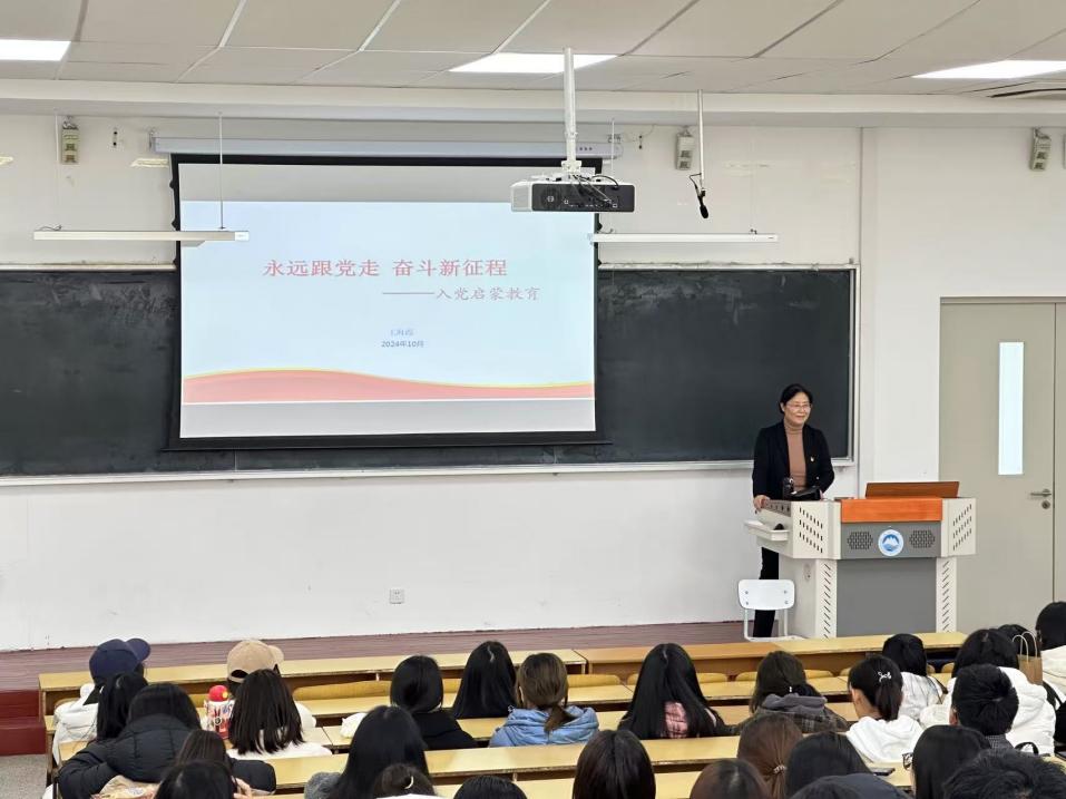 10月23日中午,成人抖音 党委在何世礼教学馆104室开展了入党启蒙教育活动第一讲。此次活动邀请了成人抖音党委组织员王海霞老师为全体2024级新生作题为《永远跟党走 奋进新征程》的主题报告。成人抖音 党委组织员鄂立华老师出席并主持本次活动。