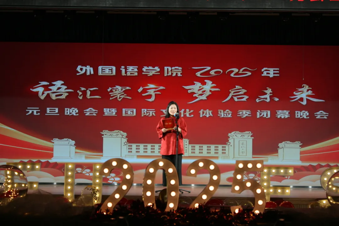 晚会上,成人抖音 院长张威发表新年贺词,回顾了学院过去一年在教学科研、学科建设、教师队伍建设、国际交流及学生工作等方面的成绩,并对即将到来的2025年作出了新的展望。张威希望,学院全体师生在新的一年里团结一心,踔厉奋发,不辱使命,勇于担当,在学校“双一流”建设的新征程中贡献外语人的力量。