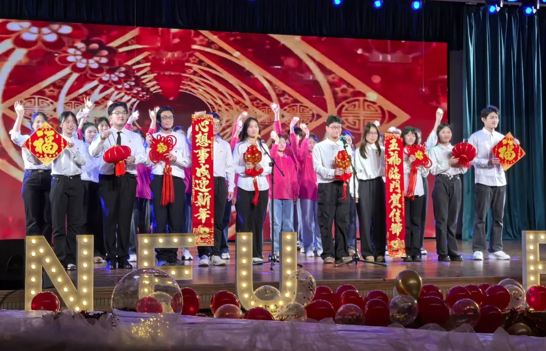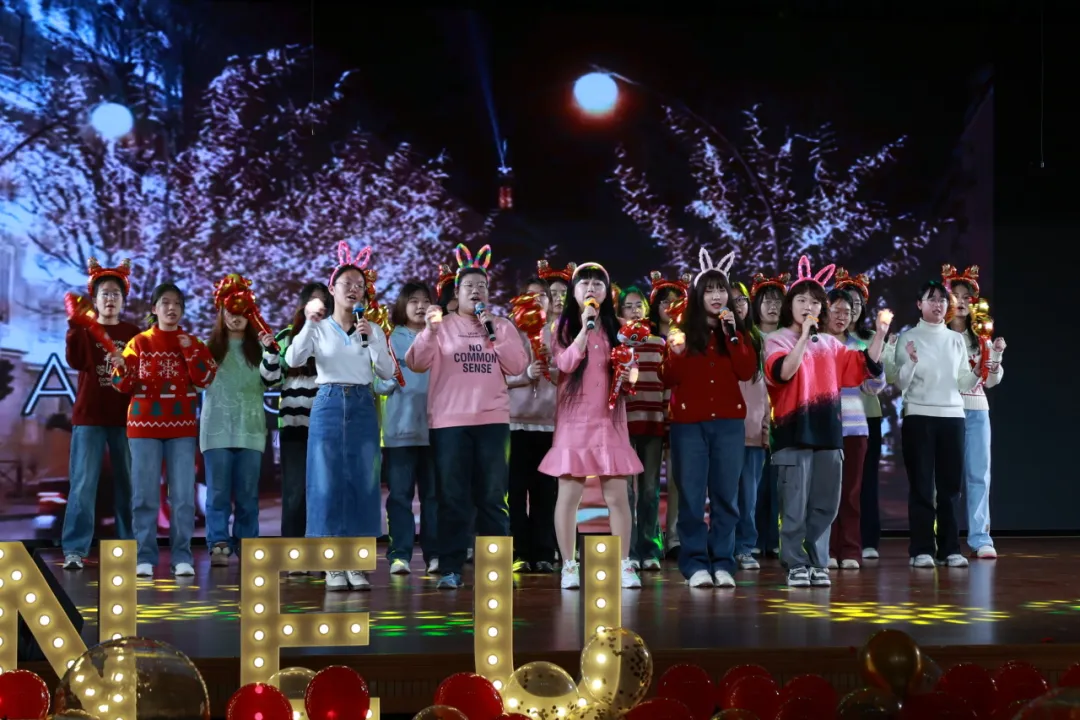 精彩纷呈的表演节目令人目不暇接,同时也将晚会的氛围推向高潮。学院团委、学生会、研究生会、社团等学生代表纷纷送上新年祝福。一首《有我》在师生齐唱中凝聚了无尽的温暖与力量。学院全体师生将共同携手,以梦为马循梦而行,阔步走进更加灿烂辉煌的未来。