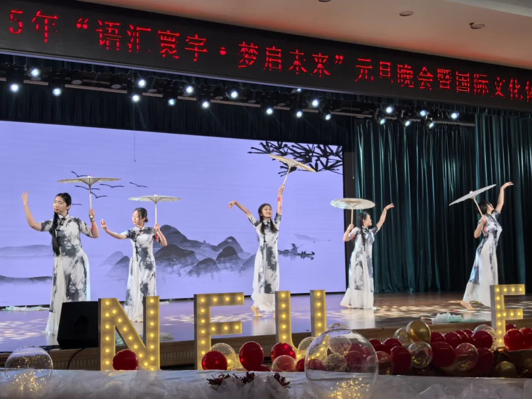 情景小品《反诈联盟》在欢声笑语中传递喜悦,也让反诈骗的警钟在师生心中长鸣;古风舞蹈《青花瓷》中舞者们翩若惊鸿,宛若游龙,用曼妙舞姿再现古风魅力;中外串烧《灵犀百声》余音绕梁,萦绕耳畔,师生同唱传递爱的无限。国标舞秀《Rhythm》中舞姿轻盈如风,热烈似火,旋转间,绘出动人诗篇;中英合唱《星夜浅吟》在语言的碰撞中擦出非凡火花,正如星空般璀璨明亮。