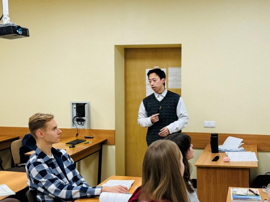 围绕“线上线下融合传播中华优秀文化”主题,俄语系学生走进汉语课堂开展沉浸式文化主题展示与互动式教学,茶艺、书法、剪纸、象棋、泥塑与纸编龙舟等生动多彩的文化内容和富有创意的教学方式,引发白俄罗斯学生浓厚兴趣与热烈互动,彰显外院俄语系学子跨文化表达与传播能力。